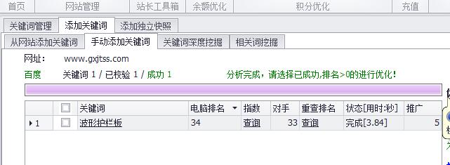 通过我们公司的软件可以很清楚的看到网站关键词的排名情况,已经在第3页了相信在经过一段时间的努力,相信很快就会到达百度首页。